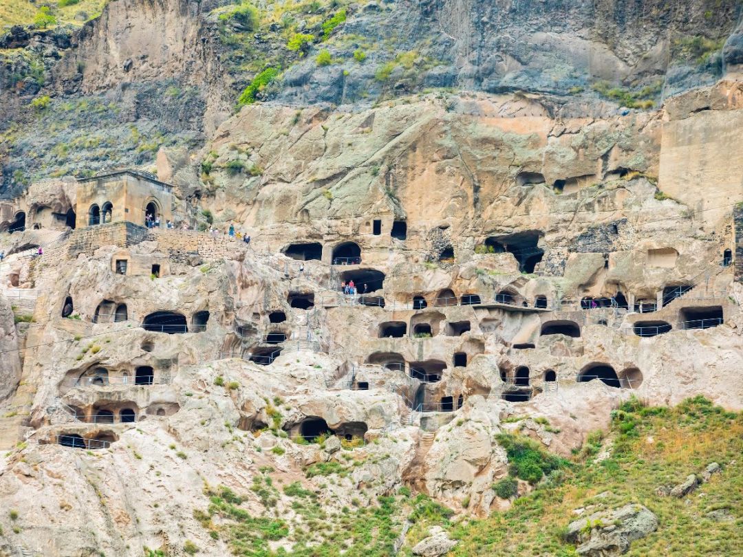 Далее отправимся на юг страны, чтобы узнать больше о Золотом веке Грузии. Недалеко от южной границы грузинского царства в XII веке царь Георгий III приказал высечь в скале пещерный город-монастырь Вардзиа, а его дочь великая царица Тамара основательно укрепила его. Землетрясение 1283 года обнажило большую часть пещер, и во время экскурсии вы увидите трапезные, кладовые, тайные ходы, подземное озеро.