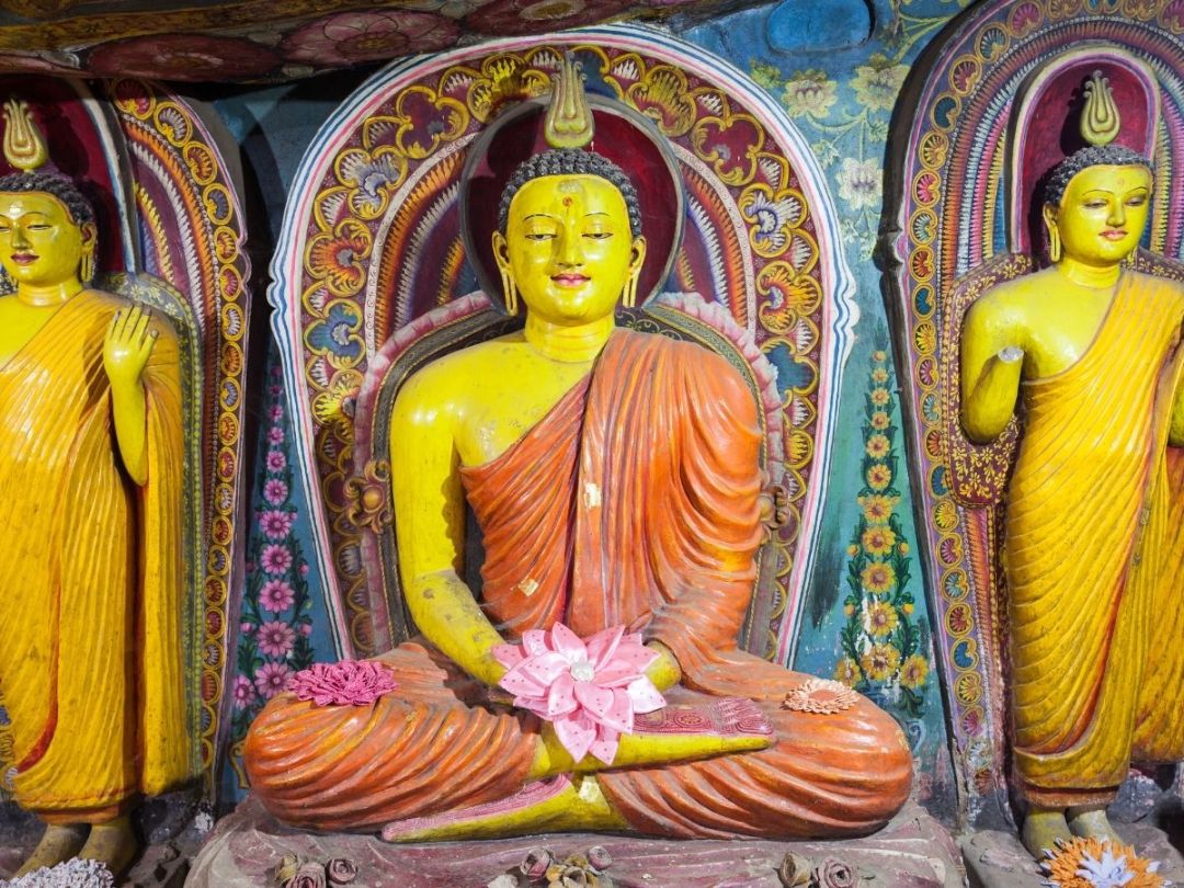 Дамбулла. В 148 км от Коломбо, на пути к Сигирии, находится пещерный буддийский храм, высеченный людьми 2000 лет назад. Скальный храм Будды, уходящего в паранирвану, является самым большим пещерным храмом в Южной Азии. Комплекс состоит из нескольких пещер. Кроме них есть множество ниш, стены которых покрыты живописью с буддистскими мотивами общей площадью 2100 м². Всего пять основных пещер и двадцать пять скальных келий с 153-мя статуями Будды, 3-мя статуями королей и 4-мя богов. Иногда храм называют Золотым из-за того, что 73 статуи покрыты золотом.