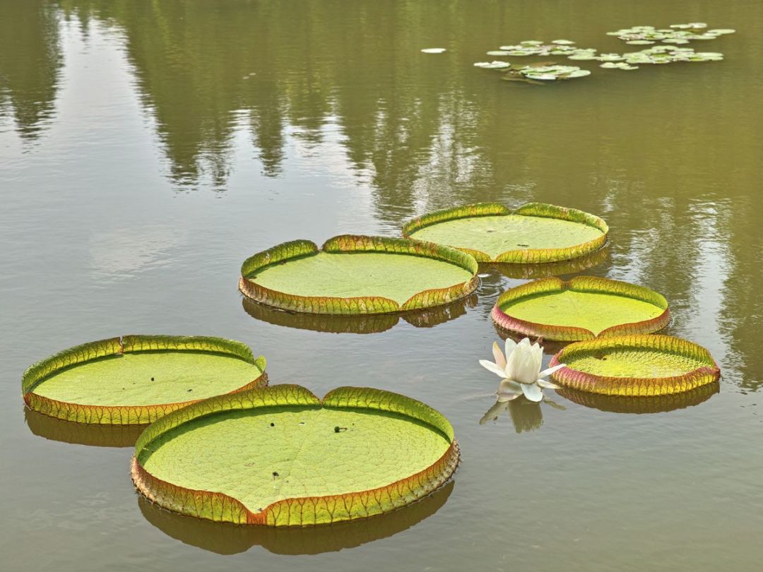Виктория регия - это гигантская водяная лилия, которая является одной из самых известных водных растений в мире. Она произрастает в пресноводных водоемах тропической и субтропической Америки, в частности, в бассейне реки Амазонки. Листья Виктории регии могут достигать значительных размеров - до 2 метров в диаметре. Они имеют характерную плоскую форму и поднятые края, что позволяет им плавать на поверхности воды. Листья обычно окрашены в ярко-зеленый цвет с пурпурным оттенком на нижней стороне.